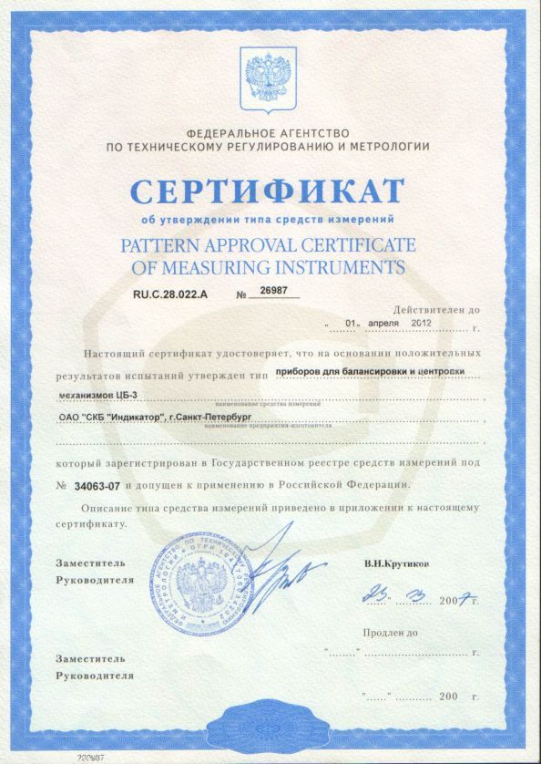 В январе 2006 года начато изготовление сертифицированного прибора нового поколения для балансировки и центровки механизмов ЦБ-3.