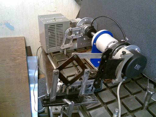 | Рис.п.1.4. Подготовленный к проверке волновой редуктор, на входном и выходном валах которого установлены инкрементные датчики угловых перемещений (вид со стороны входного вала и привода).