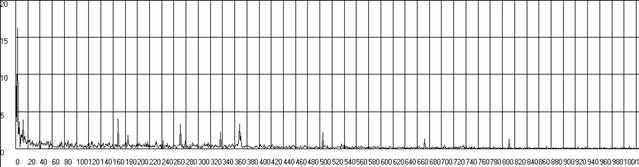| Рис.п.1.8. График спектра Кинематической погрешности волновой зубчатой передачи при вращении входного вала по часовой стрелке с разрешением по частоте 1*4.