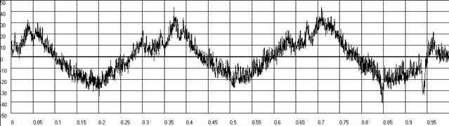| Рис.п.1.6. График временной функция накопленной погрешности волновой зубчатой передачи при вращении входного вала по часовой стрелке.