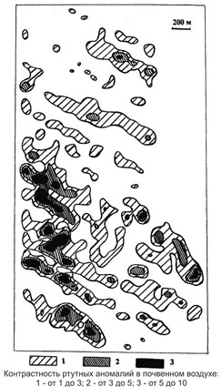 Рис. 5. Применение газортутной съёмки на золоторудном месторождении на Приполярном Урале