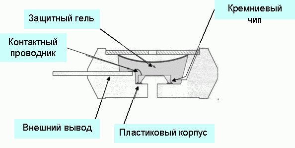 | 5. Особенности МСТ – изделий: датчики давления На примере датчиков давления особенности микроэлектромеханических изделий проявляются достаточно ярко. Датчик давления тензометрического типа - наиболее успешно продвинутый продукт МСТ. Кремниевые датчики давления - первые серийно выпускаемые микроэлектромеханические изделия, выполненные модифицированными методами микроэлектронных технологий (1966-68гг.). Это самые массовые МЭМС – изделия: при объеме рынка датчиков давления в США более 500 млн. штук в год, уже в 1996 г. до 80% составляли микромеханические датчики. Основными потребителями датчиков давления являются автомобильная и аэрокосмическая промышленность, энергетика, химия, медицина. Чувствительный элемент датчиков – кремниевый чип может отличаться по размерам, но топология элементов и конструкция чипа большинства датчиков весьма схожи. Тензочувствительные структуры (как правило, резисторы), интегрально (как одно целое) выполнены на поверхности тонкой мембраны, прецизионно вытравленной в «теле» чипа (рис. 11). Тензочувствительность кремниевых резисторов в 10…100 раз выше, чем у металлических (проволочных или фольговых) тензометров. Если это требуется, на поверхность чипа наносят покрытия для защиты от воздействия среды. К мембране необходимо подвести измеряемое давление – соединить под- и / или надмембранное пространство с измеряемой газообразной или жидкой средой. Чип устанавливается в корпус. Тип корпуса определяется назначением датчика. Для соединения применяют сварку, пайку и склеивание. При использовании пластиковых корпусов соединение выполняется склеиванием (рис.12). С металлическими корпусами чипы приходится соединять через «проставок», т.к. различное расширение материалов в диапазоне эксплуатационных температур создает паразитную деформацию мембраны, внося погрешность в результаты измерений. Стеклянное основание сваривается с чипом (рис. 11), основание соединяется с корпусом пайкой или склеиванием. В конструкциях прецизионных датчиков используются более сложные решения (см. например рис. 13). Электрическую схему чипа (для датчика тензометрического типа – это резистивный мост) необходимо соединить с внешними выводами. Контактные проводники следует закрепить, например как на рис. 12. Вернемся к теме затронутой к конце раздела 3. МЭМС - датчики давления разного назначения существенно отличаются по размерам, конструкции, степени сложности и стоимости при практически одинаковых основных метрологических показателях. Так датчики (рис.8-10) обеспечивают измерения давления в диапазоне 0…100 кПа с погрешностью 0,5% при нормальный условиях. Для большинства промышленных применений миниатюрные датчики в настоящее время не типичны. Необходимость надежной защиты от внешних воздействий, как чувствительного элемента, выполненного в виде чипа, так и коммутационных соединений чипа с внешними проводниками, приводит к тому, что МЭМС – чипы спрятаны глубоко внутри датчиков давления промышленного назначения (см. рис. 8). В результате по металлоемкости и сложности такие датчики незначительно отличаются от традиционных конструкций. Аэрокосмические применения – область, где малые габариты и масса являются одним из решающих аргументов в пользу МЭМС – приборов. Проблема защиты от внешних воздействий здесь также весьма значи