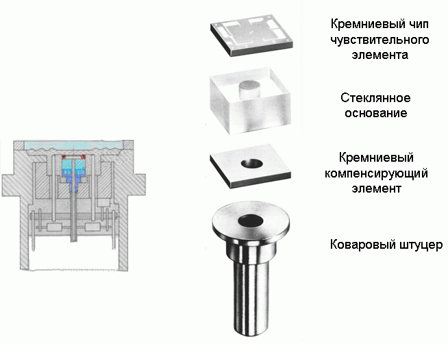 Рис. 13. Датчик давления промышленного назначения ( KISTLER , Швецария) Конструкция измерительного модуля |