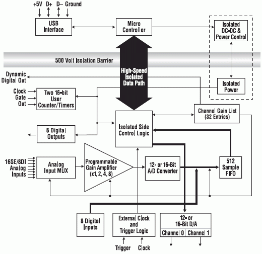 16 униполярных (несимметричных) или 8 дифференциальных (симметричных) каналов АЦП (12 бит, 100 кГц на все задействованные каналы)