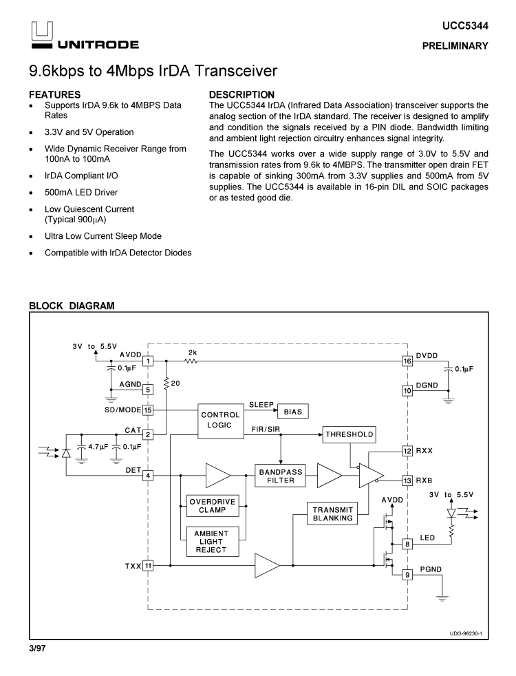 | 9.6kbps to 4Mbps IrDA Transceiver |